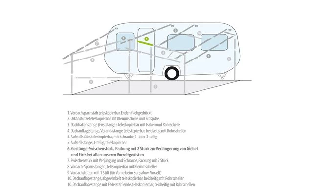 Gestänge-Zwischenstücke zur Verlängerung von Giebel und First bei allen unseren Vorzeltgerüsten. Packung mit 2 Stück.
