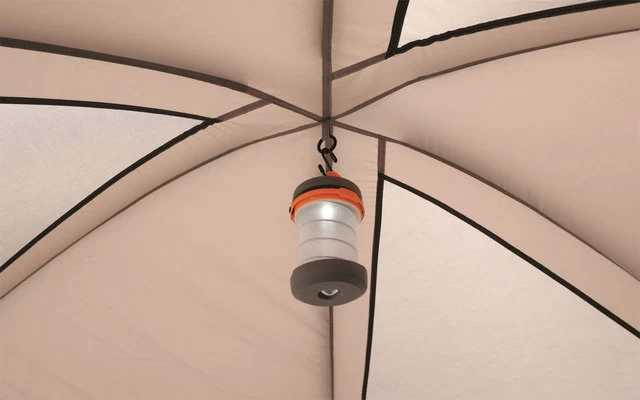 Die Easy Camp Moonlight-Jurte verfügt über vorgebogene GFK-Stangen, die für volle Kopffreiheit sorgen. Sie ist für bis zu sechs Glamper ausgelegt und bietet Familien und Freunden somit reichlich Platz und Freiraum – für ein einzigartiges Naturerlebnis und gemeinsamen Outdoorspaß. PVC-Fenster sorgen für ausreichend Licht im Innern. Die aufrollbaren Vorhänge mit festen Aufhängepunkten bieten gleichzeitig Schutz vor neugierigen Blicken. Einen einfachen Zugang ermöglicht der große, zusammenfaltbare Eingang, der mit einem Zwei-Wege-Reißverschluss flexibel geöffnet und geschlossen werden kann.Große Netzeinsätze unter dem Überzelt, ein in die Tür integriertes Fenster aus Netzgewebe mit aufrollbarem Vorhang sowie abgedeckte Lüftungsöffnungen an der Rückseite sorgen für eine gute Belüftung.