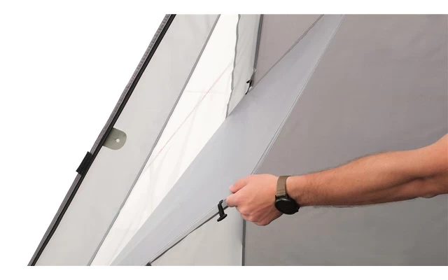 Das Shamrock hat eine vielseitige Tunnelkonstruktion zu bieten und ist mit einem vorgebogenen Glasfasergestänge, plus externe Glasfaserstangen für mehr Stabilität und einer Spannvorrichtung für das Zeltgewebe ausgestattet. Zahlreiche Merkmale machen den geschlossenen Vorraum ideal für Rundreisen: Stehhöhe, vier Fenster mit Vorhängen, eine große Vordertür, die auch als zusätzlicher Unterstand verwendet werden kann, eine große Hintertür, große Lüftungsöffnungen an den Seiten, Lüftungsöffnungen an der Vorderseite sowie ein aufrollbarer Zeltboden, der die gesamte Innenfläche bedeckt.