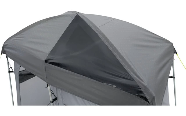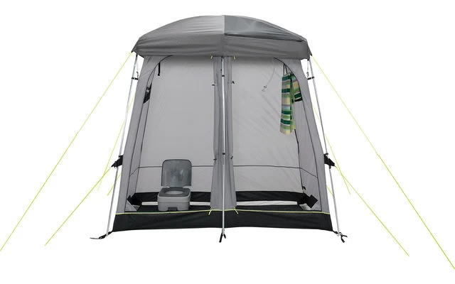 Mehr Komfort auf dem Campingplatz. Diese Universalzelte bieten die Möglichkeit, eine chemische Toilette diskret unterzubringen, sich umzuziehen oder zu duschen. Der Raum ist mit einer Hängevorrichtung ausgestattet. Die Doppel-Komfortstation bietet sogar die Möglichkeit, mit der intelligenten Quick & Quiet-Verbindungstür, von einer Kabine in die andere zu kommen, beispielsweise um sich nach dem Duschen bequem umzuziehen.