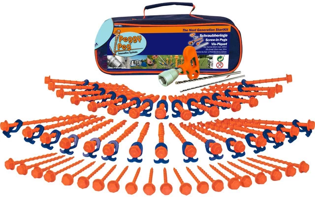 - 2 Steinbohrer (20 cm) Das PreDrill-Set beinhaltet zwei zum PeggyPeg Schraubheringsystem passende Bohrer zum Vorbohren von Kernlöchern. Mit diesen extra langen Bohrern wird ein 4-5 cm tiefes Loch vorgebohrt. Darin wird – am besten per Hand – der Schraubhering eingesetzt und mit Einsatz eines Hakens festgedreht. 1 x Bohrer 6mm für Schraubhering S,