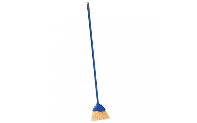 Mit eingeschraubtem Metallstiel, rutschfest beschichtet und circa 22 cm breite, keilförmige Bürste.